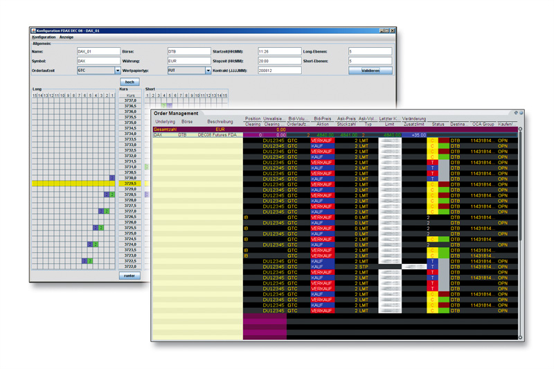 - Der Handelsclient platziert innerhalb von Bruchteilen einer Sekunde eine Vielzahl von Orders und führt das Ordermanagement von offenen Positionen selbstständig durch.